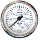 Perimeter-lighted White dial with stylish Blue and White graphics, polished stainless steel bezel, contoured White pointer and domed glass lens.